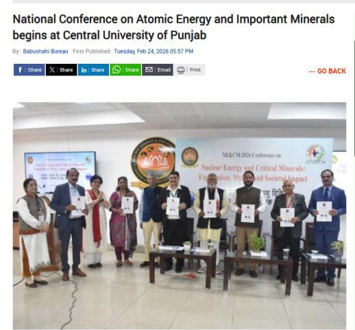 NE&CM-2026 Conference on Nuclear Energy and Critical Minerals: Exploration, Myths, and Societal Impact